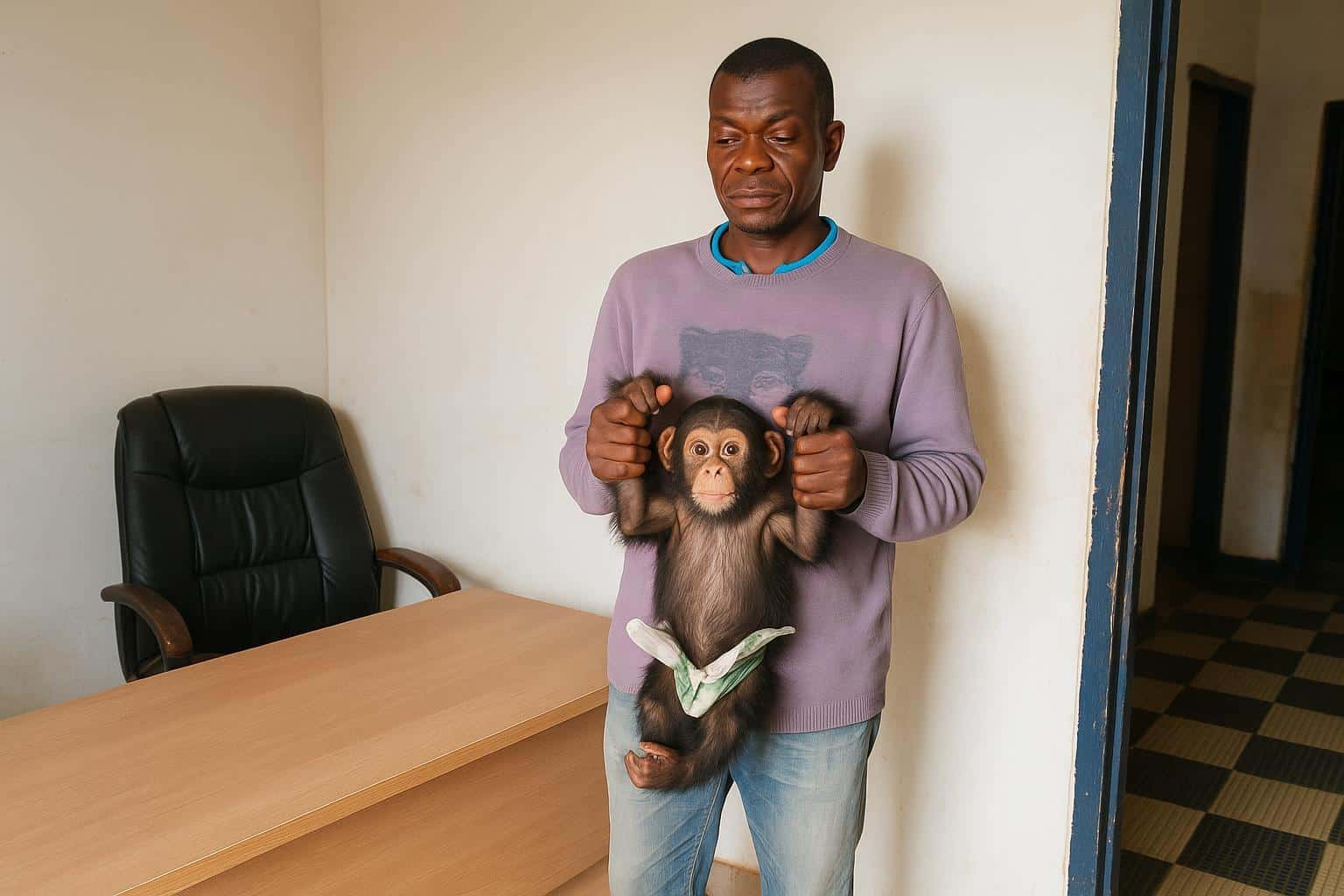 Court documents retrace a troubling itinerary. The six-month-old chimpanzee, captured in the dense forest of Kindamba in the Pool department, was kept in captivity for nearly two months. Investigators testified that the animal had been bound with rope and fed an inadequate diet, leaving visible lesions on its wrists. Acting on intelligence provided by community informants, gendarmes stationed in Nkayi mounted a controlled operation on 28 October, intercepting Mr Moukoko in flagrante delicto as he attempted to negotiate a clandestine sale. Officers from the Departmental Directorate of Forest Economy seized the primate, while the Project for the Application of Wildlife Law, PALF, supplied forensic support that helped trace the point of capture and corroborate the chain of custody. (Jane Goodall Institute).